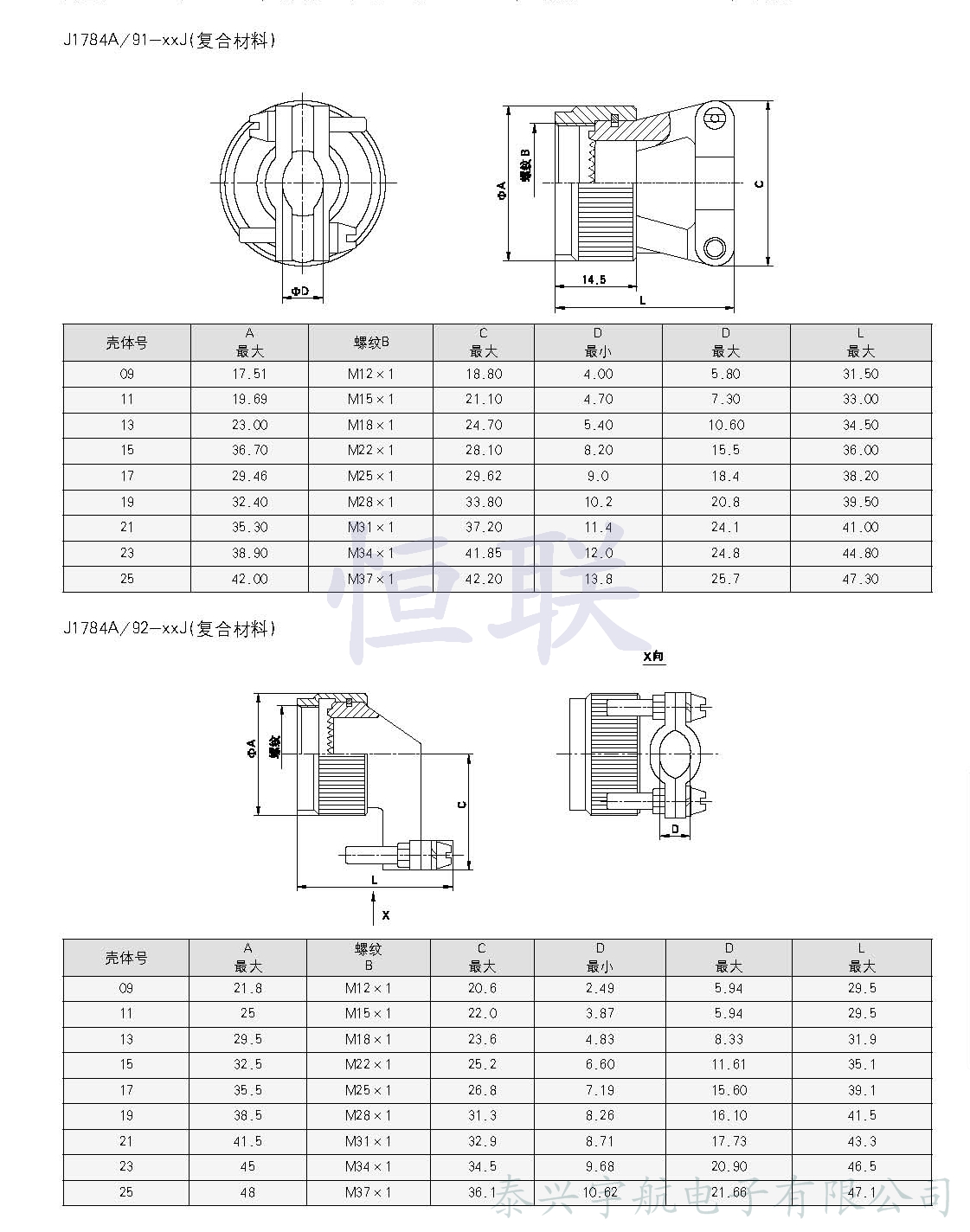 * 符合GJB599A(MIL-DTL-38999K)Ⅲ系列